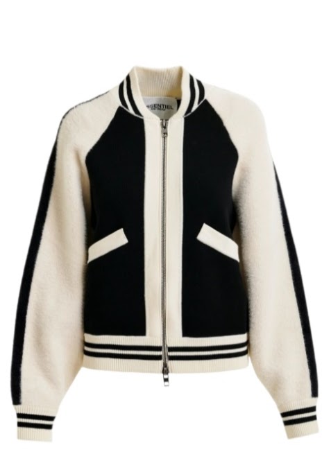 Giubbotto bomber nero e panna, lavorato a maglia, vestibilità comoda, maniche raglan, chiusura frontale con zip, finiture a costine, pannelli in pelliccia sintetica, tasche a filetto. Poliammide, viscosa e poliestere.