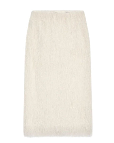 Gonna bianca con frange, tessuto leggero, vestibilità regolare, lunghezza midi, chiusura posteriore con bottoni, foderata. Poliestere.