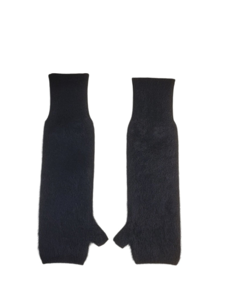 Guanto nero in cachemire, monodito, lunghezza gomito, rifiniture a costine. 100% cachemire.